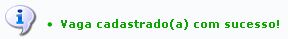 Para dar prosseguimento com a operação de cadastro de vaga, o usuário deverá clicar em Cadastrar. Em seguida, a mensagem de sucesso da ação será exibida pelo sistema.